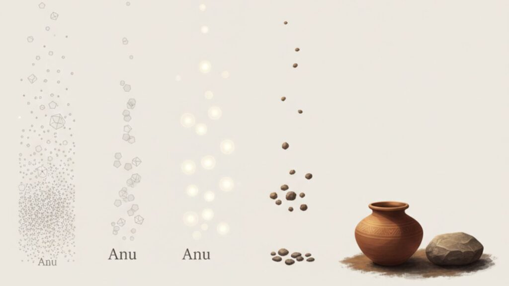 The most important terms in discussions of atomic theory ancient India are anu and paramanu. In Sanskrit, anu means something extremely small. It can mean minute, subtle, or fine. Paramanu literally means the smallest possible anu. It refers to the smallest indivisible unit of matter. Ancient Indian thinkers described paramanu as something that could not be broken down further. It was beyond perception. It had no parts. This already sounds very close to the basic idea of an atom.