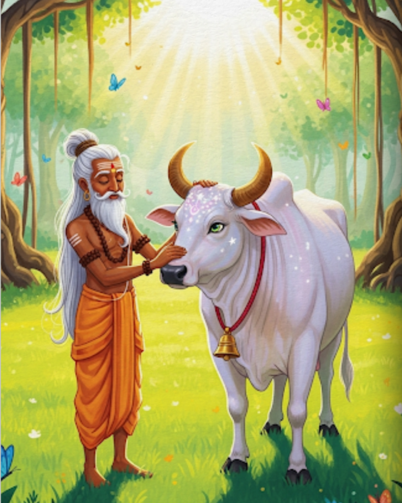 Summary The Kamadhenu cow story reveals how spiritual wisdom triumphs over ego and brute force. When King Vishwamitra attempts to